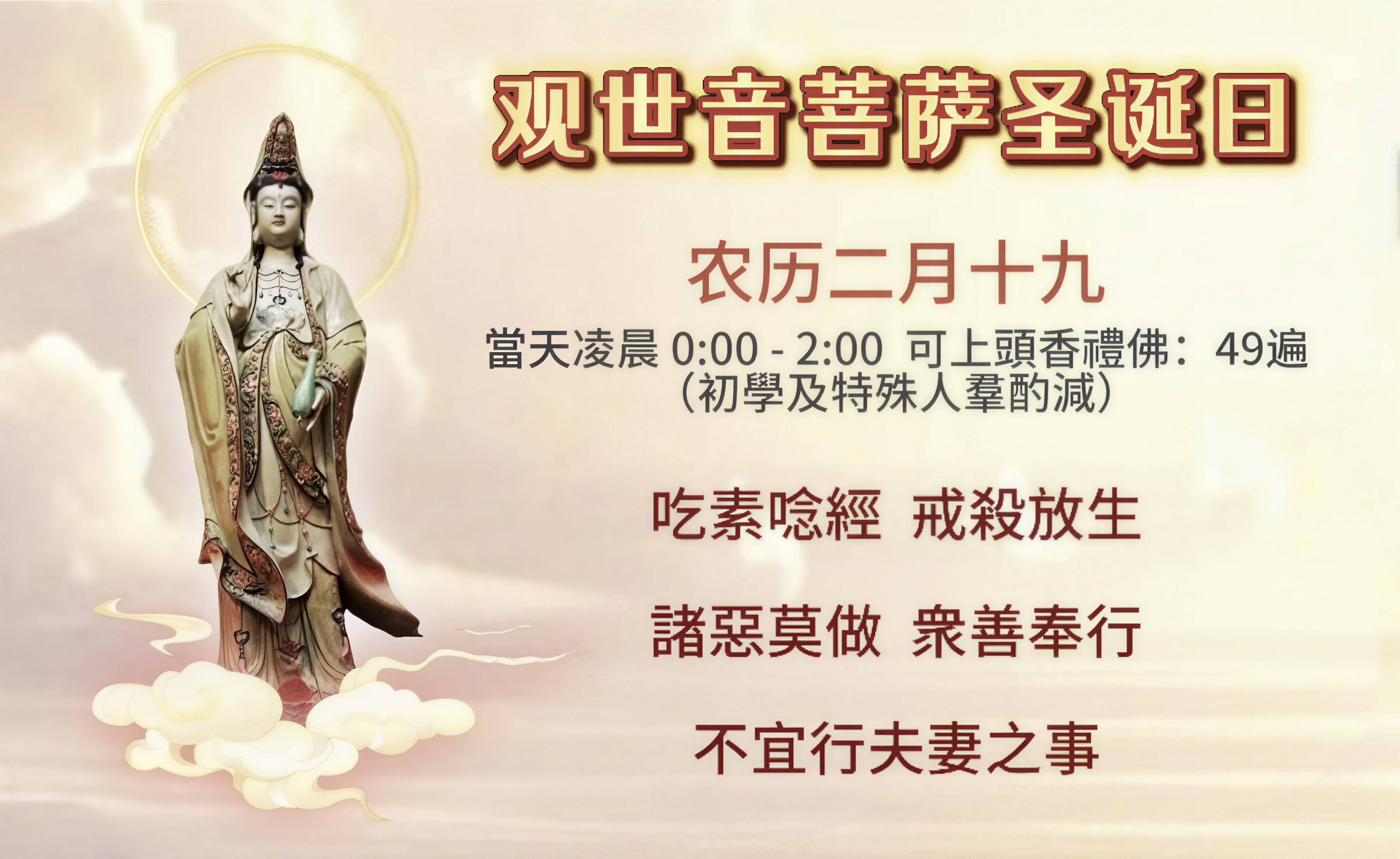 观世音菩萨 圣诞日 当天凌晨12点到凌晨2点可上头香